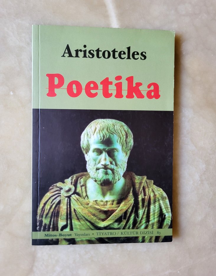 Yeni.Aristoteles'in "Poetika" adlı eseri, tiyatro sanatını ele alır, kapağında Aristoteles büstü vardır.