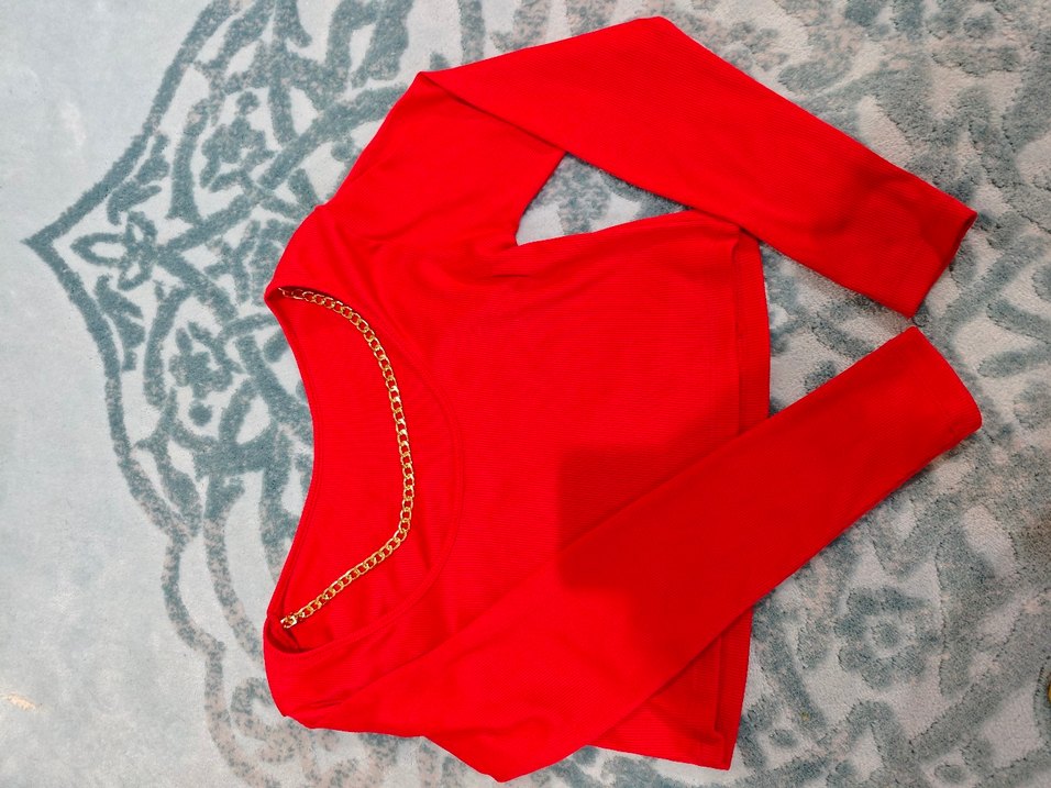 arka dekolte üstüne altın sarısı bir kolyeli zinciri var rengi canlı köyü turuncu
