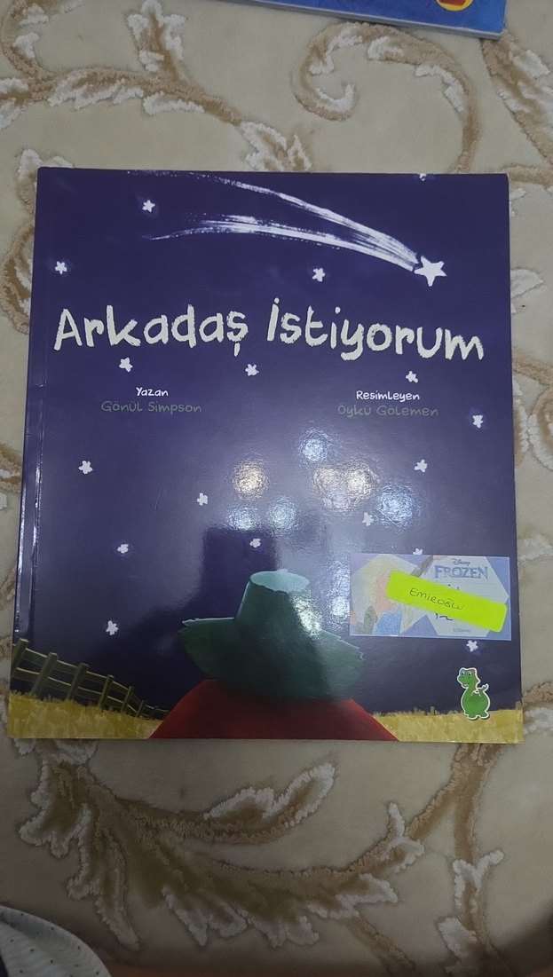 Gönül Simpson'un yazdığı, Öykü Golemen'in resimlediği 'Arkadaş İstiyorum' adlı çocuk kitabı. Kapakta yıldızlı gece ve kayan yıldız yer alıyor.