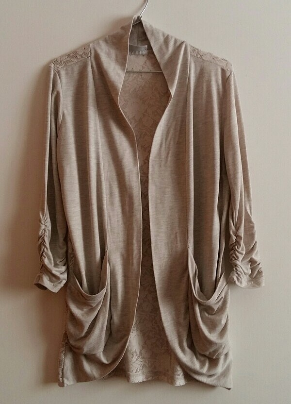 C&A yan markasına aittir. iç etiketinde L yazsa da S/M beden için daha uygun. üste giyince önden kapanmıyor, yanlara doğru açılıyor. kol uçlarının iki yandan lastiklerle büzüştürülmesi, ceplere verilen boşlaşma görünümü ve dantel yüzeyi ile çok tarz bir parça. #kimono #dantel #güpür