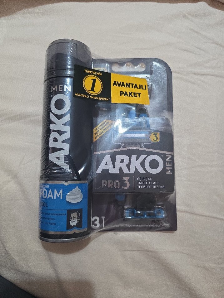 Arko Men Pro3 tıraş köpüğü ve üç bıçaklı jilet içeren avantajlı paket. Türkiye'nin lider markasından tıraş seti.