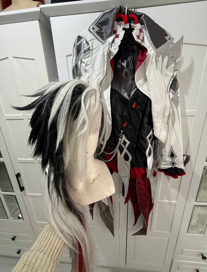 SATILDI Cosfun markadir. Herhangi sorunu yoktur. Aksesuarlari 3D dir. Ceketi ağir ve kaliplidir. Içerik: ceket yelek(deri) pantalon(deri) peruk(şekilli) eldivenler(tirnaklari hazir takilidir fazla tirnaklari gonderecegim) Fiyat: 6000 odemeyi ibandan kargoryu burdan yapiyorum