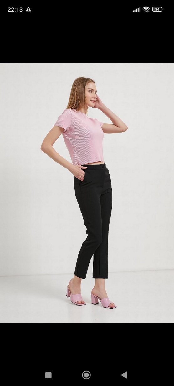 Siyah kumaş pantolon bir veya iki kere giyildi güzel bir duruşu var l bedendir. duruşu resimdeki gibidir