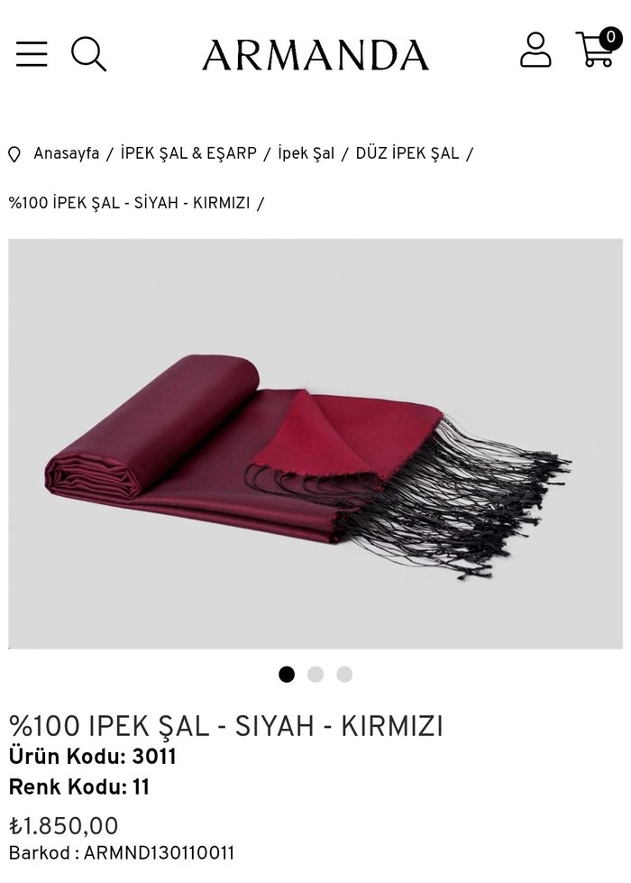 Bordo ve siyah renklerde, %100 ipekten üretilmiş, püsküllü, yumuşak dokulu klasik şal. Sadece bir ya da iki kez takılmıştır. Ürünün güncel sıfır fiyatı görseldeki gibidir. Son fotoğraftaki diğer daha uygun fiyatlı ipek şal ve eşarplar veya ipek olmayan şal ve eşarplar için gardropsumu ziyaret edebilirsiniz.