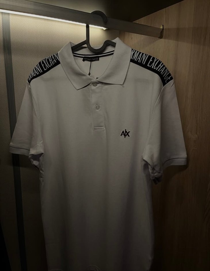 Armani Exchange erkek beyaz polo tişört, kısa kollu ve yakalıdır. Omuzlarda gri baskılı detaylar ve göğüste AX işleme bulunur. Rahat kesim ve sentetik yumuşak kumaşla tasarlanmıştır. Bütün bedenler mevcuttur XS,S,M,L,XL