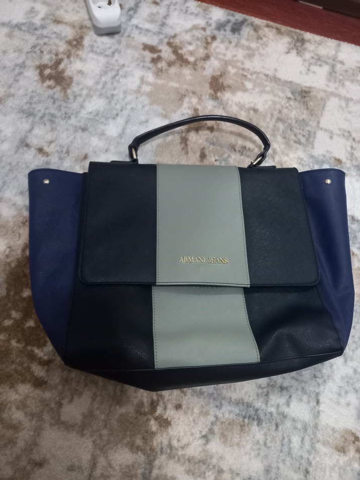 Armani Jeans gri deri kadın çanta, tokalı kapak ve baskılı deseniyle günlük kullanım için modern ve Paris tarzını bir araya getiriyor.