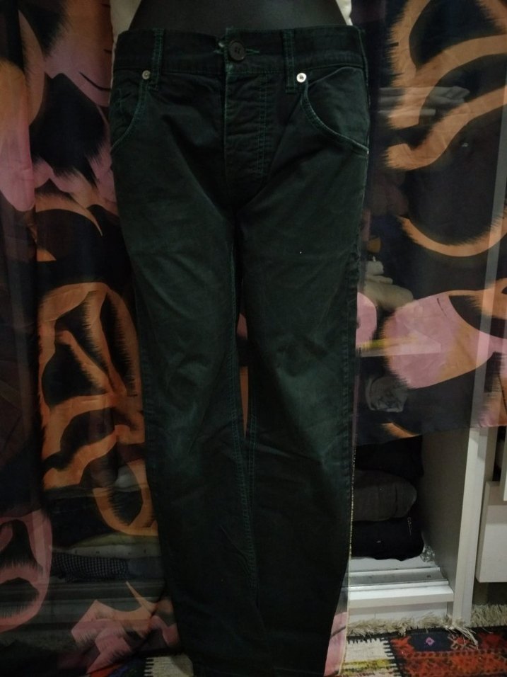 Siyah düğmeli erkek denim pantolon, normal boy ve regular fit. Günlük ve sokak stiline uygun.