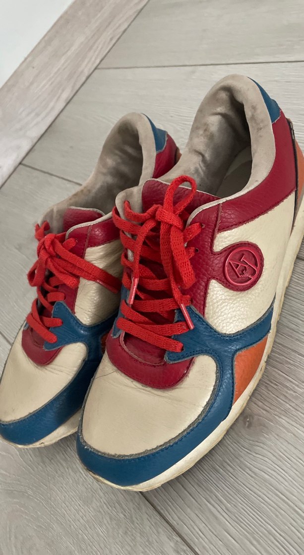 Renkli, bağcıklı, dolgu topuklu kadın spor ayakkabısı. Kauçuk malzemeden üretilmiş, sportif ve günlük kullanıma uygun.
