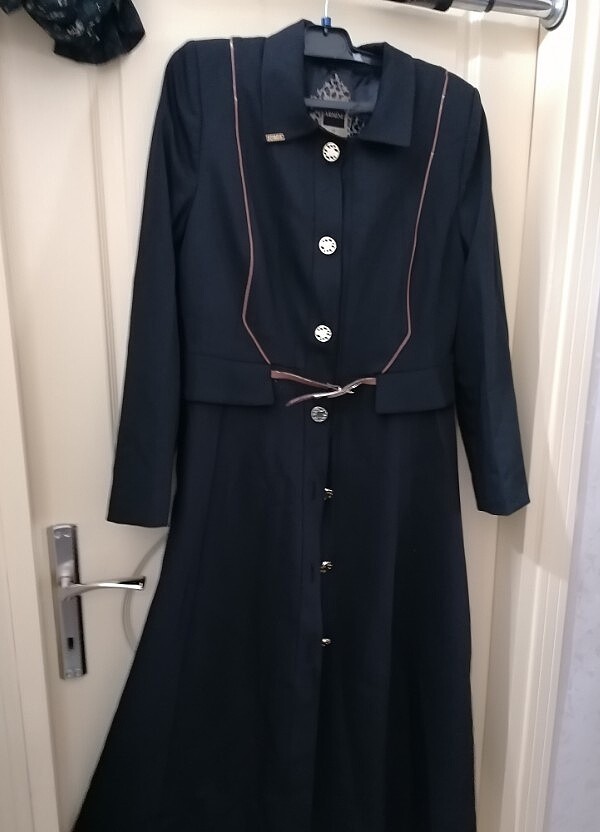 çizgi detaylarındaki derilerde yıpranma var. onun haricinde bir sorunu yok. yedek düğmesi var. Çok şık duruyor. #tesettür #armine #pardösü #kapalıgiyim #lacivert