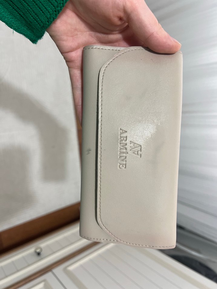 ARMiNE markalı, fermuarlı kapamalı bej deri kadın cüzdanı, minimalist baskılı deseniyle şık ve kullanışlıdır.