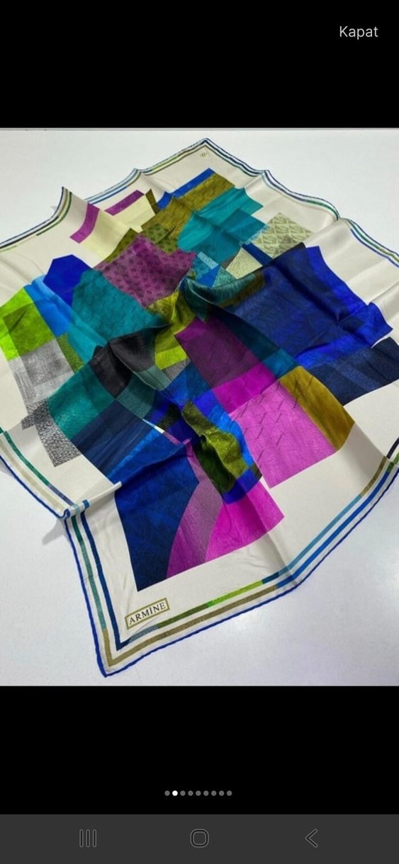 Armine marka, çok renkli tekstil kumaştan, modern ve avangart tarzda, drapeli kadın şalı.