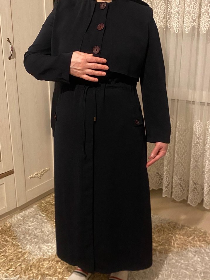 Armine Düğmeli lacivert Uzun Kadın pardesü