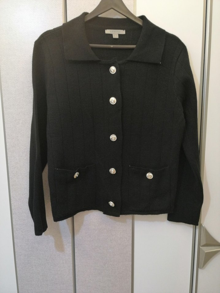 Armine Düğmeli ön kapamalı, siyah hırka ve etek takımdır.Etek hiç kullanılmadı,hırka ise 3 kez kullanıldı hırkanın üzerinde hafif tüylenmeler vardır fiyata yansıttım,kullanıma engel değildir