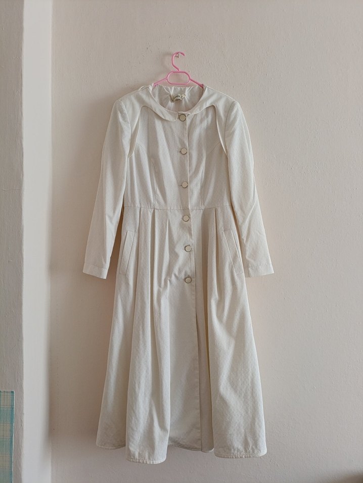Armine Düğmeli Uzun Beyaz pardesü