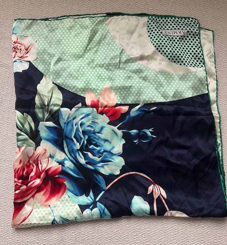 %100 ipek armine çiçekli desenli eşarp. Bir kere bile ütüleyip kullanmadım. Yıllar önce arkadaşlarım doğum gününe hediye olarak almışlardı ama ben şal insanıyım hiç takamadım birisine vermeye de kıyamamıştım. Artık sadeleştiğim için kullanmadığım herşeyi olabildiğince uyguna satıyorum