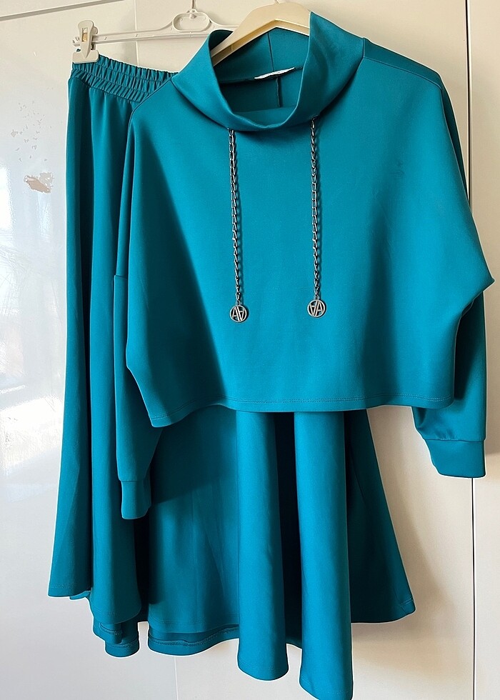 Arminenin turkuaz rengi etek takımıdır. 42-44 beden aralığında. Sadece 2 defa giyildi.