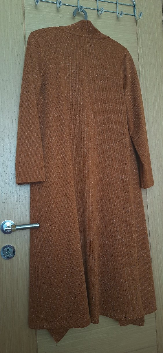 40 beden taba rengi hırka veya giy çık. Ürün tertemiz nerdeyse hiç kullanılmadı. simli taba rengi makinede yıkamaya da gelen bir ürün. armine marka