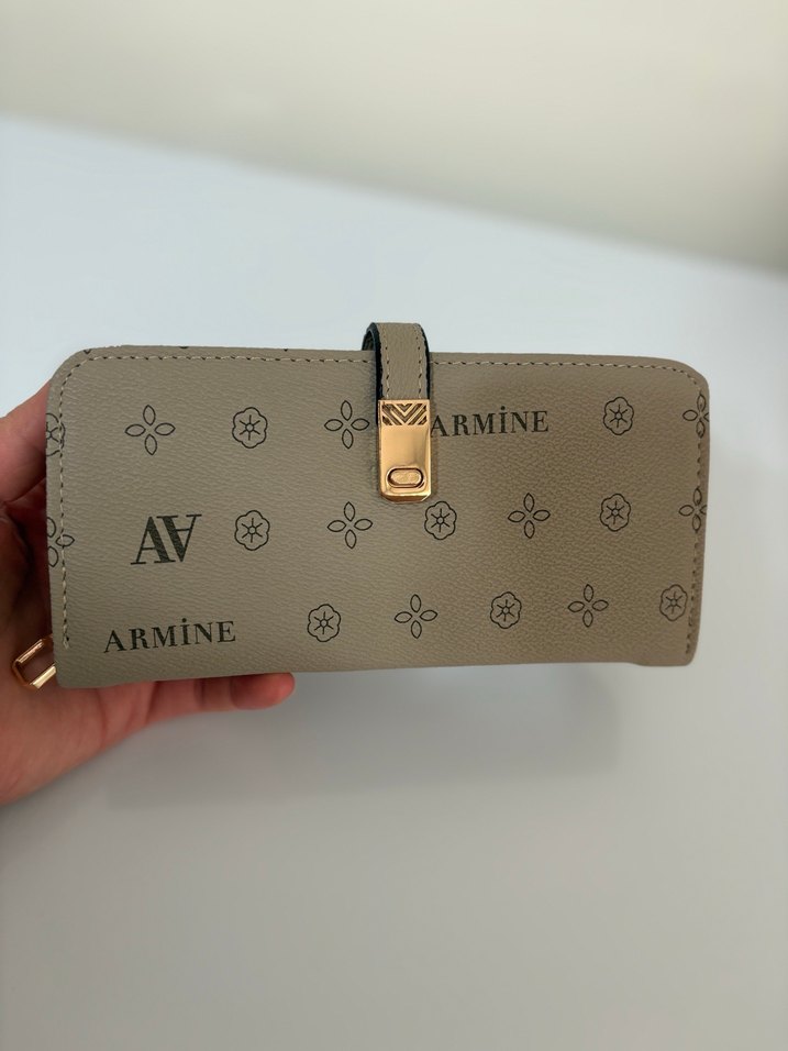 Bej renkli, desenli deri cüzdan, fermuarlı kapanışa sahip. Bohem tarzıyla trend günlük kullanıma uygun. Marka: ARMiNE. Ürün sıfırdır çeyiz alışverişinde aldım hiç kullanmadım.