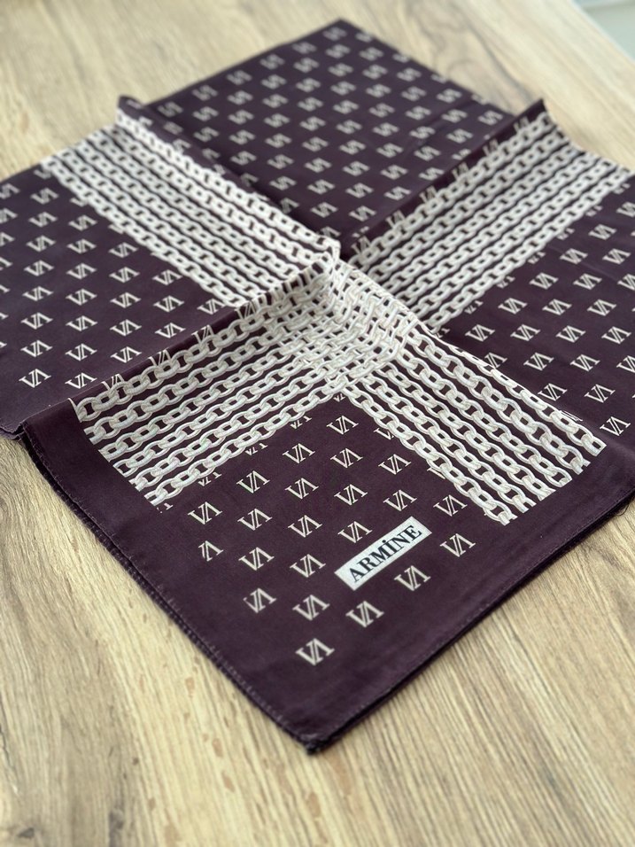Sentetik kumaştan örme vintage tarzda koyu kahverengi Armine markalı fular.