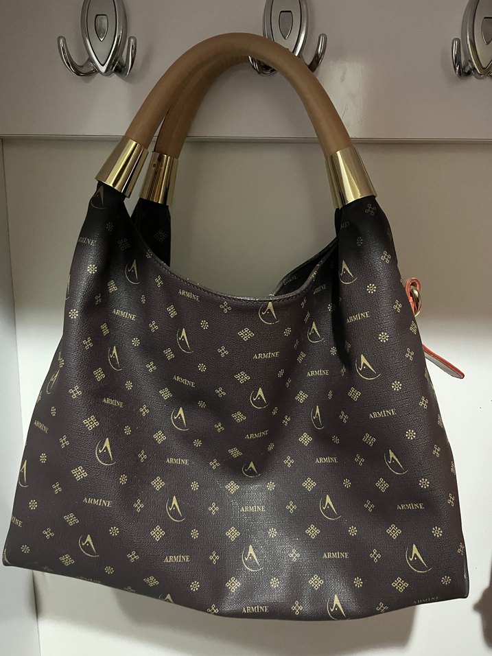 Orijinal Armine.Herhangi bir yerinde yırtılma sökülme yoktur.iç astarı temizdir.İçinde orta kısmında gizli fermuarlı bölümü ve yanlarında küçük gözleri vardır.Eni 35 cm yakındır.