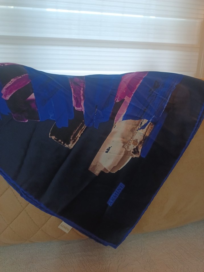 Parlak mavi renkte, ipek dokulu kare eşarp