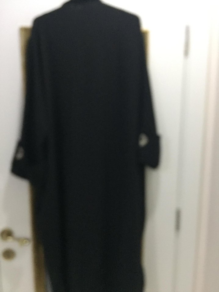 ARMINE marka siyah renkli, düğmeli, uzun kollu ve notched lapel yakalı, bol kesim uzun parduse. tesettüre uygun