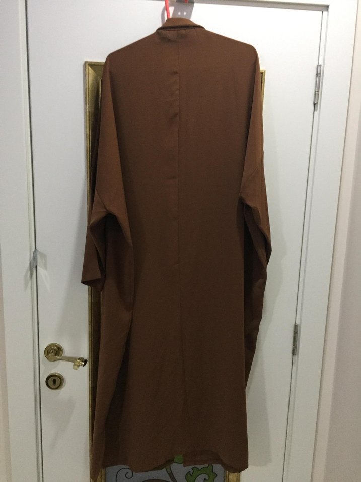 ARMINE MARKA Uzun kahverengi Parduse V yakalı ve uzun kolludur. İpek gibi dokusu ve rahat kesimiyle sade, mütevazı bir görünüm sunar.