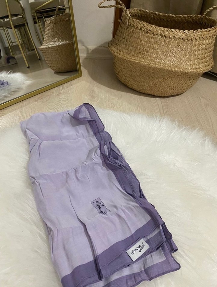 Pastel mor renkte, ipek görünümlü, drapeli, rahat ve sade bohem tarzda bir eşarp ürün 1 kere kullanıldı