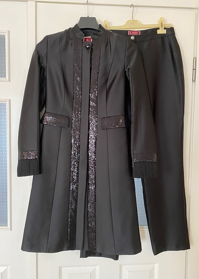 Sadece 1 kez giyildi yeniden farksız Armine marka çok kaliteli bir takım. Kalın saten kumaş pul payet ve tül detayları var üst 36 alt 38 beden Bedeni olan kaçırmasın bu markaların bu tarz ürünleri şu an çok pahalı bilen bilir zaten ceket içi astarlı. Ceket iki kol arası 42 cm, ceket bel 37 cm, ceket boyu 98 cm, kol boyu 63 cm, pantolon boyu 106 cm, beli 39 cm basen 54cm üzere oturan bir modeldir lütfen ölçülerine göre karar verin