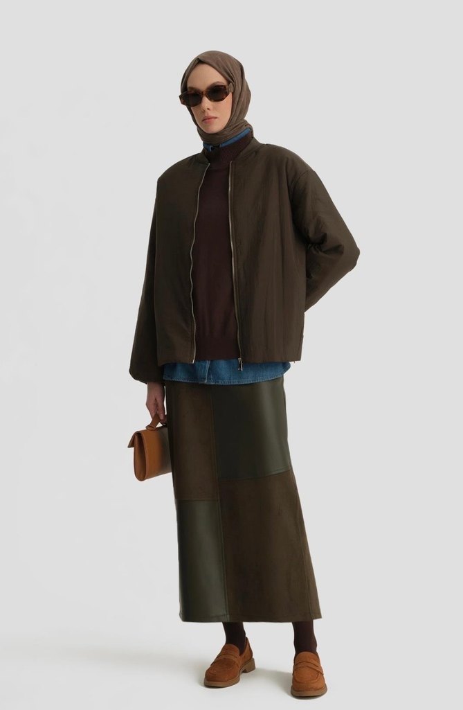 Haki deri, midi uzunlukta, kalem etek Sokak stiline uygun şık tasarım. Sıfır üründür, etiketi üzerindedir. Kalem eteği kendime yakıştıramadığım için -iade süresini farketmeden kaçırmışım- bu platformdan satışa çıkardım.