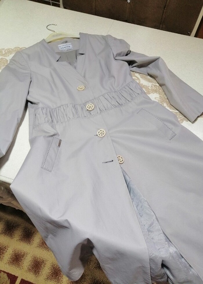 44 beden gri renkte içi astarli kumaşı çok güzel kaliteli armine trenckot 1 2 defa giyildi yeni gibidir sadece vatka sevmediğim için çıkarttım onun haricinde bir sorunu yok