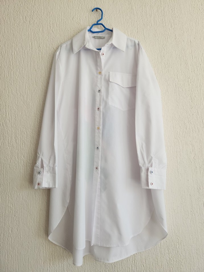 ✨ Armine Trend Özel Koleksiyon Arkası Baskılı Beyaz Tunik Hem şık hem modern! Armine Trend kalitesiyle, klasik beyaz gömlek formuna sanatsal bir dokunuş eklenmiş harika bir parça. ÜRÜN DETAYLARI: - Marka: Armine Trend (Orijinal) - Beden: 40 (M-L uyumlu) - Durum: Çok temiz, hatasız. - Tasarım: Arkasında modern fırça darbeli renkli baskı mevcuttur. - Düğme Detayı: Önü gizli patlıdır, düğme kenarları arkadaki desenlerle uyumlu renklere sahiptir. - Boy: Arkası önünden hafif uzundur, basen kapatır. Tesettür kombinleri ve ofis şıklığı için birebirdir. Kumaşı tok ve kalitelidir, iç göstermez. Dolapta beklediği için hafif kırışıktır, ütülendiğinde ilk günkü gibi durur. Kargoya hızlı verilir. Keyifli alışverişler! #armine #arminetrend #tunik #beyaztunik #beyazgömlek #tesettürgiyim #tesettürtunik #40beden #lbeden #baskılıtunik #modern #şık #günlük #ofisşıklığı #temizürün