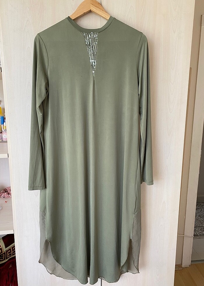 1 beden Armine tunik ürün boy 113 cm kol altından göğüs ölçüsü 52 cm defosu yoktur sadece önünde fotoğrafta da belli olduğu kadar minik bir iz vardır belirtmek istedim