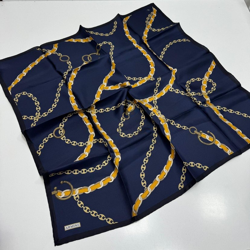 Armine Twil İpek Eşarp Lacivert Sarı Altın Rengi klasik spor
