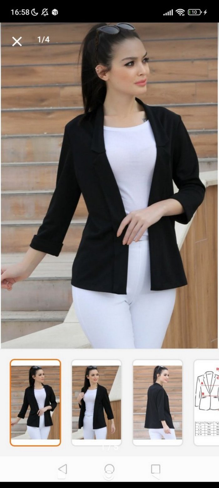 Siyah blazer, düğmeli ve kesimli yakalıdır. Uzun kollu ve regular fit olup, ofis ve günlük kullanıma uygundur sadece denenmiştir son fiyattır