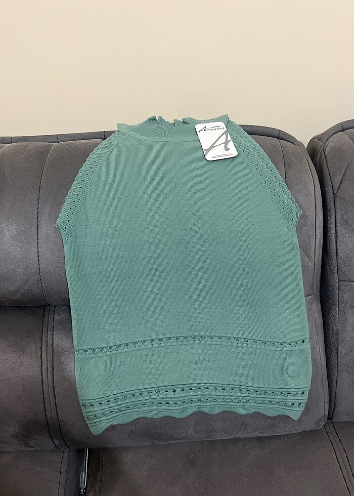 Sıfır etiketli triko bluz, standart bedendir