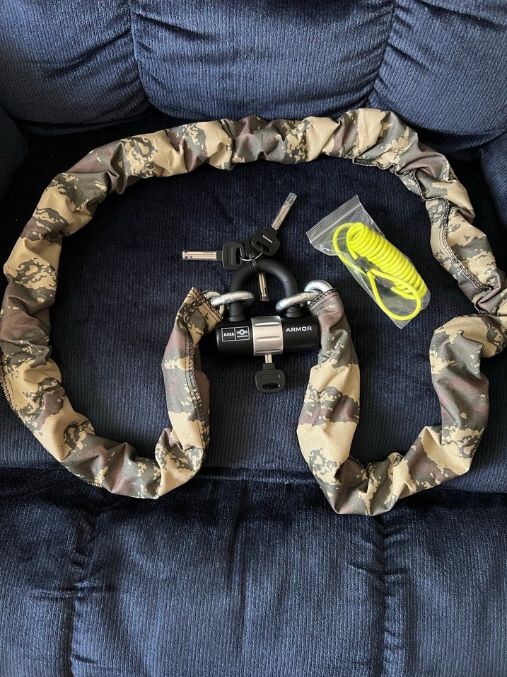 180 cm kesilmez zincir Armor U kilit , aynı zamanda disk kilidi olarak kullanılır . Uyarı kablosu hediye .