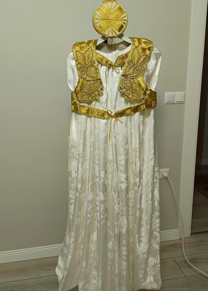 Hiç bir deformesi yok sadece yeleğin ve kemerin iç tarafında uzun süre dolapda durmaktan kaynaklı sararma var o yüzden fiyatı düşük başka hiç bir deformesi yok Yelek Kemer Şapka Şalvar takım