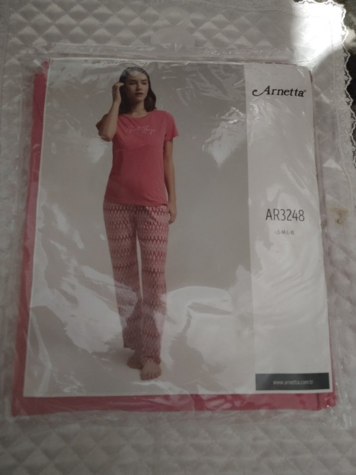 Arnetta'nın pembe tonlarında, kısa kollu, normal boyda ve bol kesimden oluşan tie-dye desenli kadın pijama takımı.