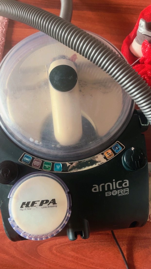 Arnica Bora 3000 elektrikli süpürge, etkili toz tutma sağlayan HEPA filtreye sahiptir. Beyaz renktedir ve verimli temizlik sunar.