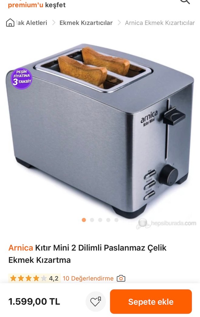 Arnica Kitır Mini, paslanmaz çelik gövdesi ve 2 dilimli yapısıyla ayarlanabilir özelliklere sahip gri renkte kompakt bir ekmek kızartma makinesidir. Bir kaç defa kullanıldı hiçbir hasarı yoktur .