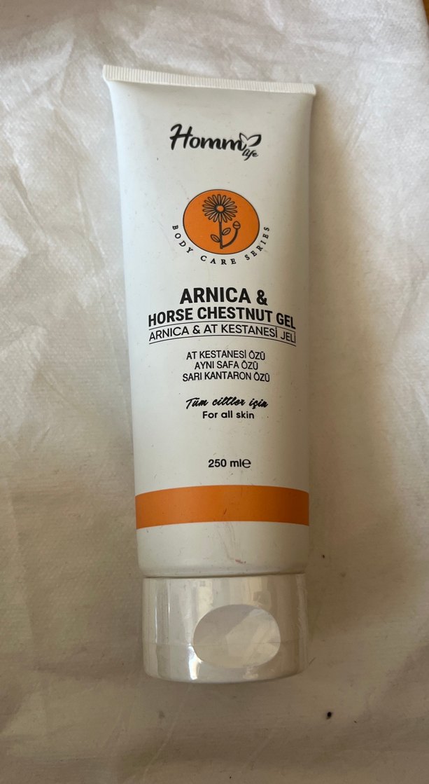 Arnica, at kestanesi, ayın safaozo ve sarı kantaron özleri içeren 250ml vücut jeli. Tüm cilt tipleri için uygundur.