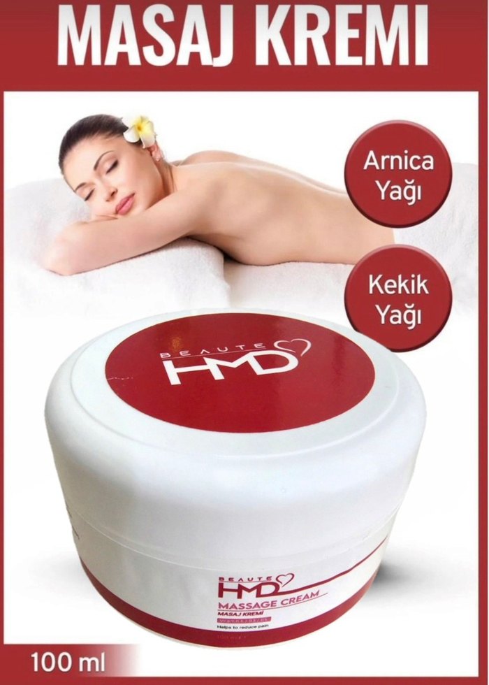 100ml'lik masaj kremi, arnika ve kekik yağları içerir. Cildi besleyip rahatlatmak için uygundur. ♀️ BEAUTE HMD arnica ve kekik yaglı masaj yagı kremi 100 ml