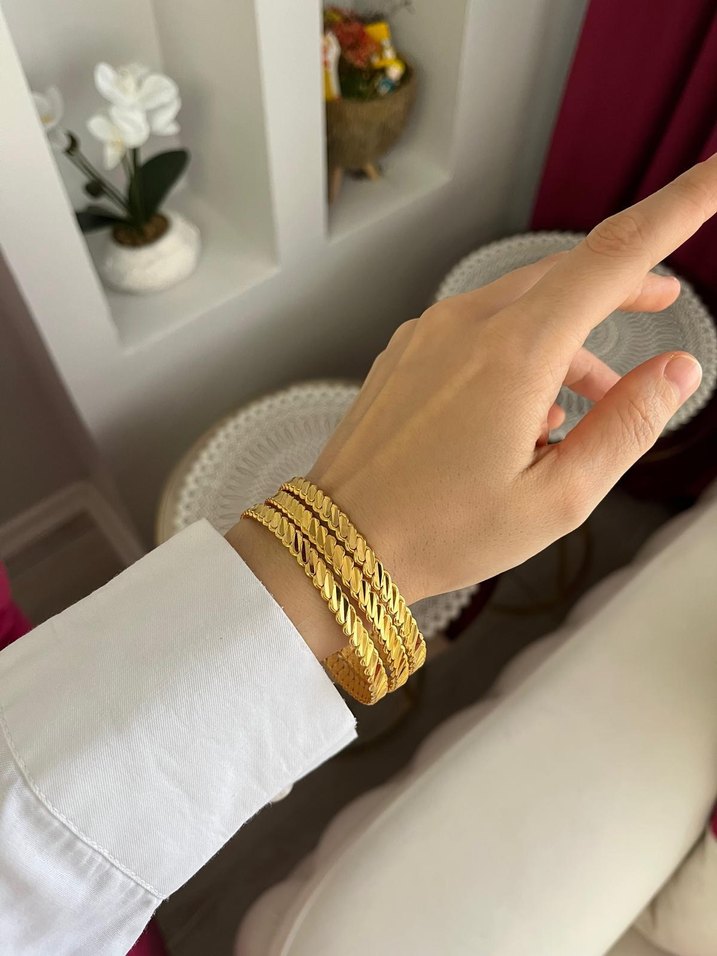 Tane fıyatıdır çoklu alımda indirim vardır lütfen mesaj atınız özel ilan açıyorum Parlak altın renkli, yılan desenli ve pliseli tasarıma sahip minimalist, klasik tarzda günlük kullanıma uygun bileklik.
