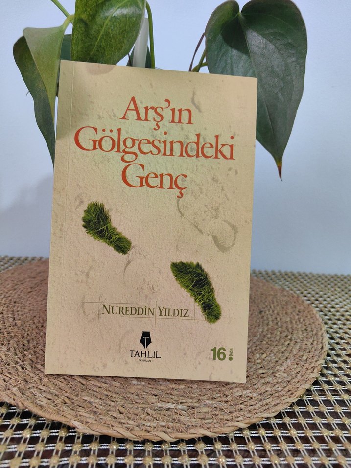 Nureddin Yıldız'ın 'Arş'in Gölgesindeki Genç' adlı şiir kitabı. Yeşil ayak izleriyle sade kapak tasarımı sunar.