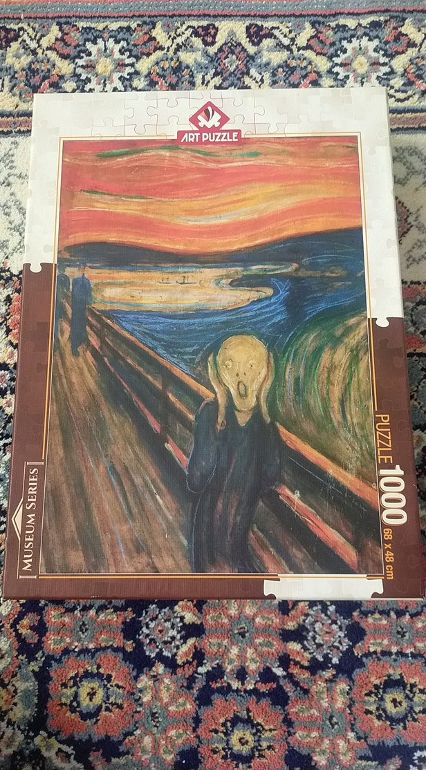 Art Puzzle tarafından hazırlanan, 68x48 cm ölçülerinde, 1000 parçalı Çığlık temalı puzzle. Eksik parça yok yapıştırıcısı da içindedir