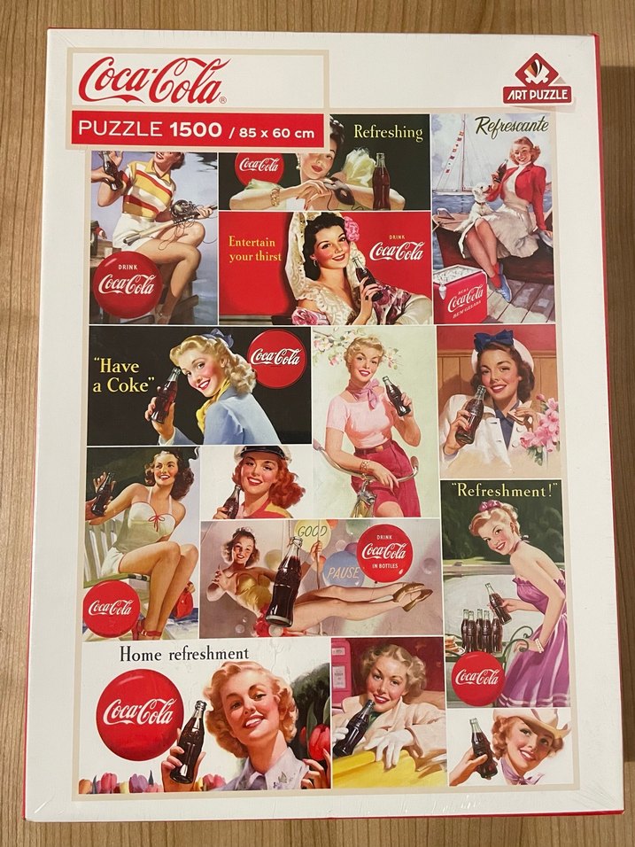 Ürün sıfır, jelatinlidir. 85x60 cm ölçülerinde, 1500 parçalı, Coca-Cola kızlarını içeren canlı renklerde puzzle.