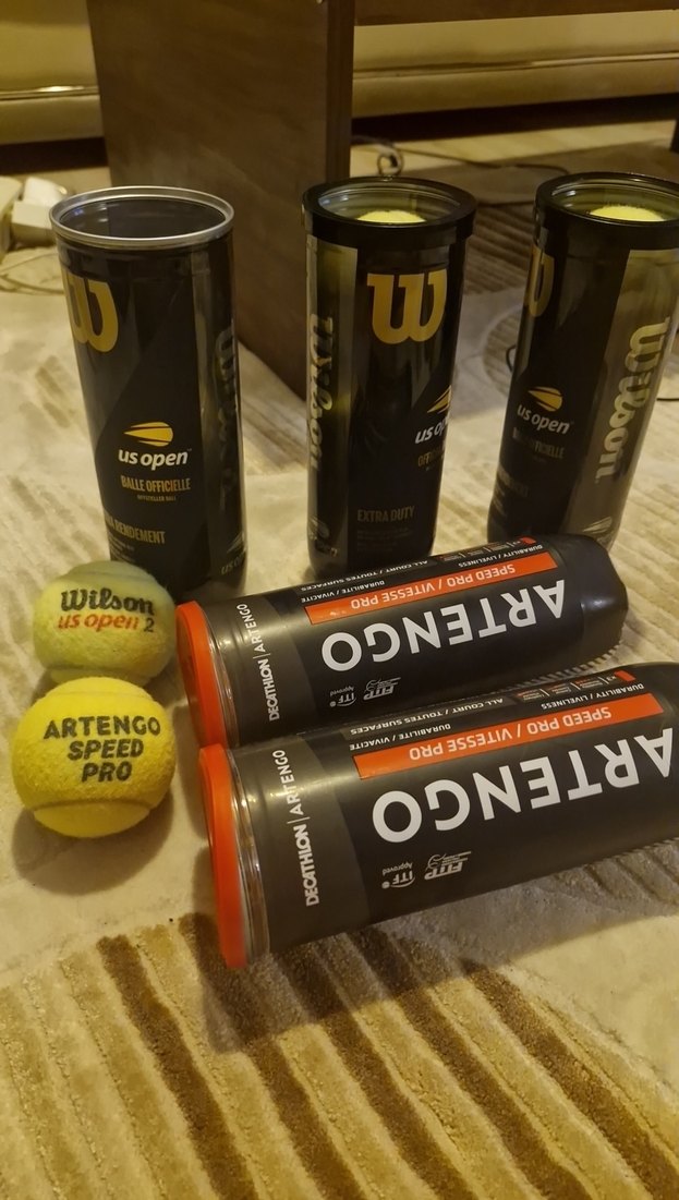 Artengo Speed Pro ve Wilson US Open markalarına ait 15 adet az kullanılmış tenis topu