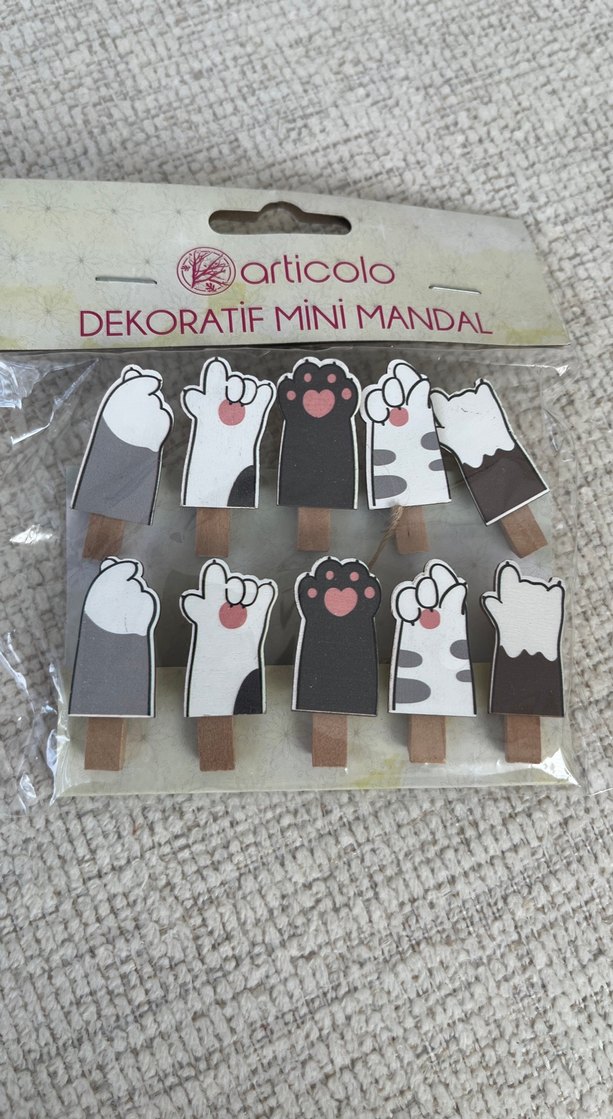 Articolo dekoratif mini mandallar, bej ve gri tonlarda farklı kedi pati ve kuyruk desenleri içerir. Küçük el işi veya tırnak süslemeleri için uygundur.