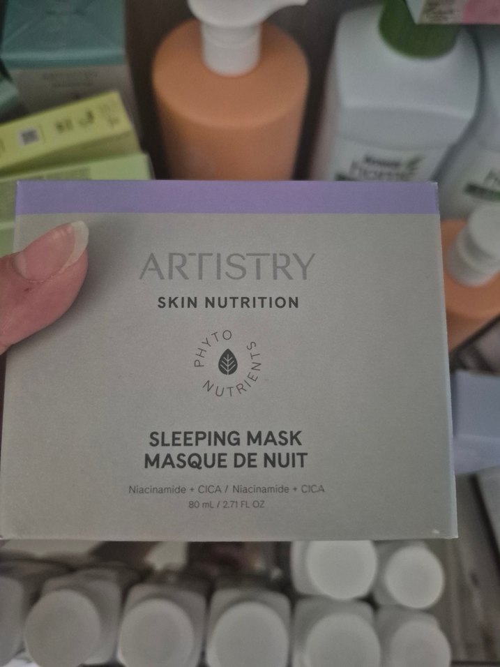 Artistry Skin Nutrition gece maskesi, niasinamid ve CICA içerir, cildi gece boyunca besler ve yatıştırır. 80 ml boyutundadır. amway